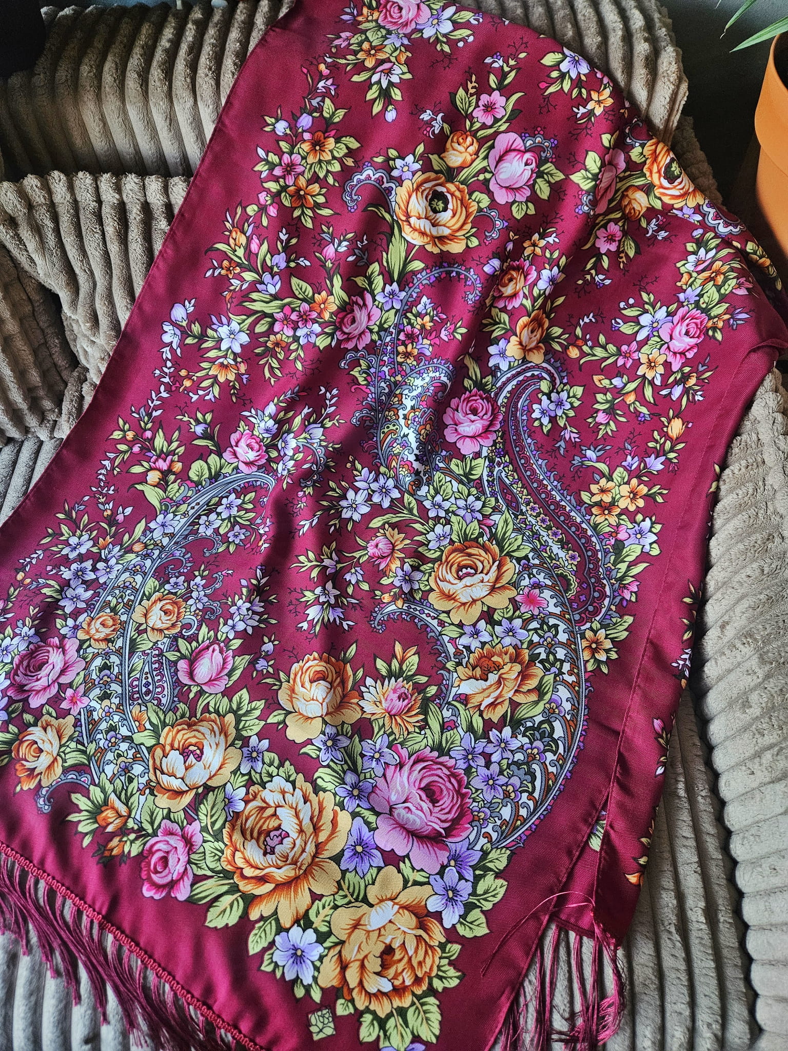 Wymiar szala: ok. 69 cm na 175 cm + frędzle około 12 cm