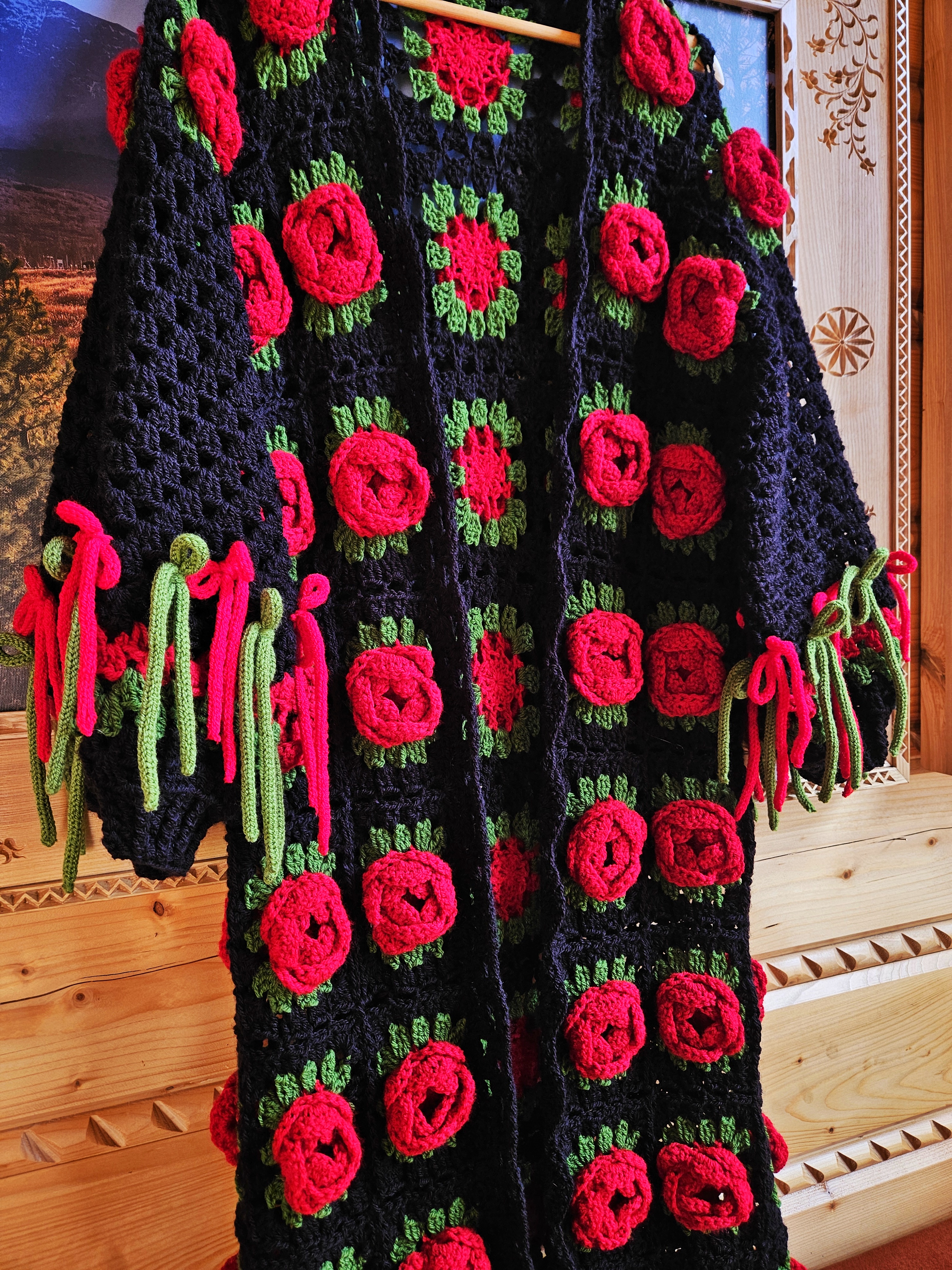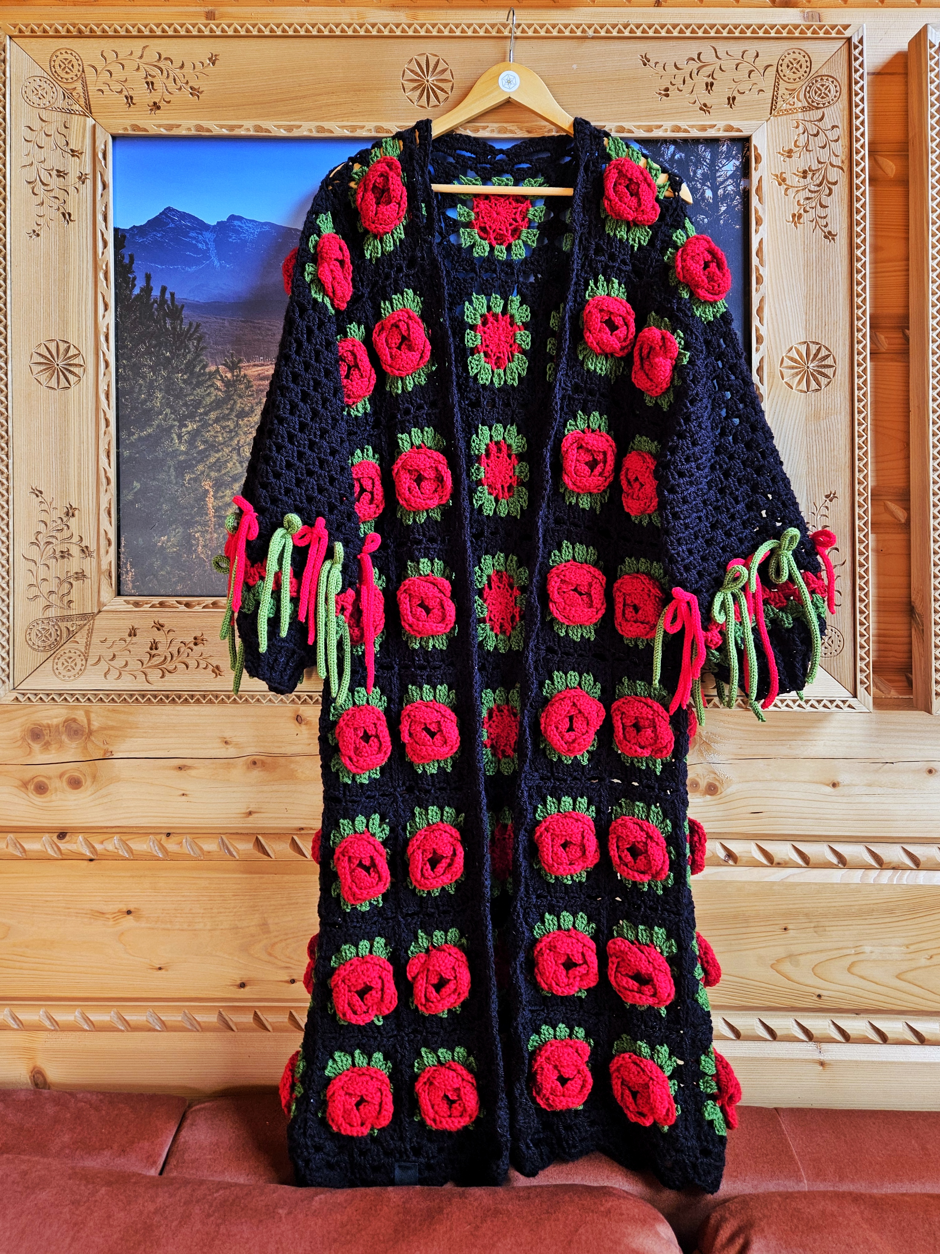 Sweter FIONA - Góraleczka długa (czarna w czerwone róże)