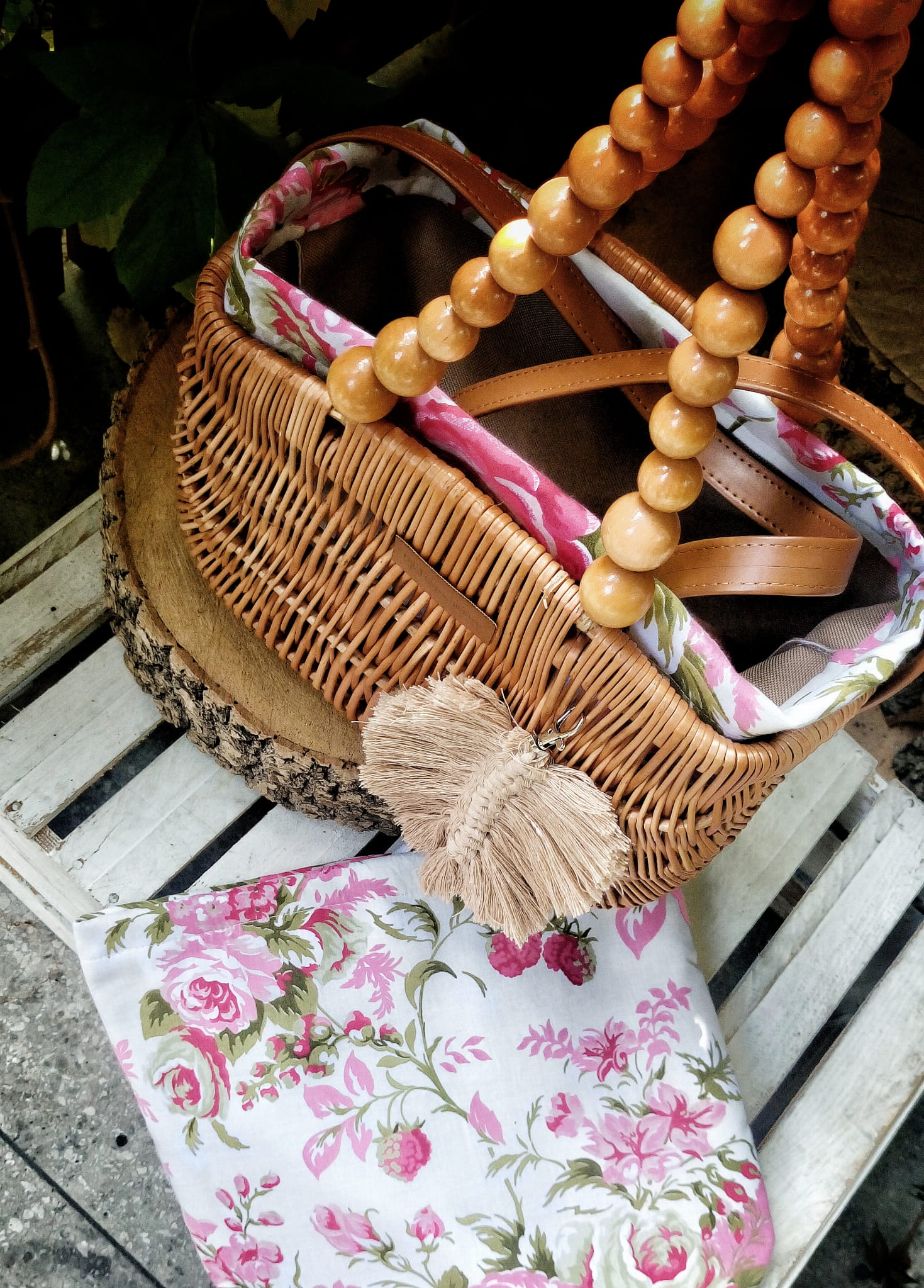 Torebka wiklinowa - Grażyna, rączki z korali