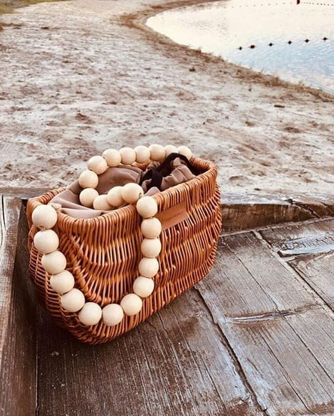 Torebka wiklinowa koszyk - JADŹKA I, pasek z korali